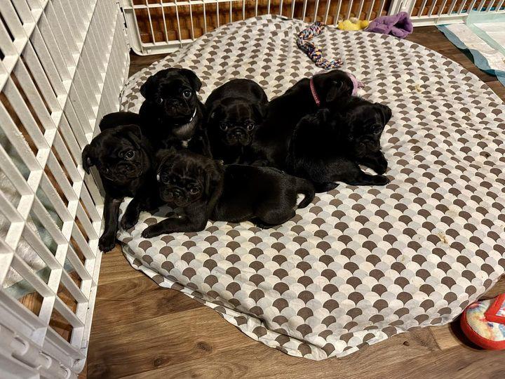 Hello ,our beloved pets Bushinho and Sky have made us for 2nd and last time grandparents,we have 6 wonderful puppies with such a grat personality, 3 boys, 3 girls, 2 fown boys ,1 black, and 2 fown girls and one black, they all are used with cats and love kisses and cuddles. We will like to find good families for them . Born on 10 of April 2024 . They all eat wet and dry food Royal Canin. Please if you are interested let us know. Thank you .