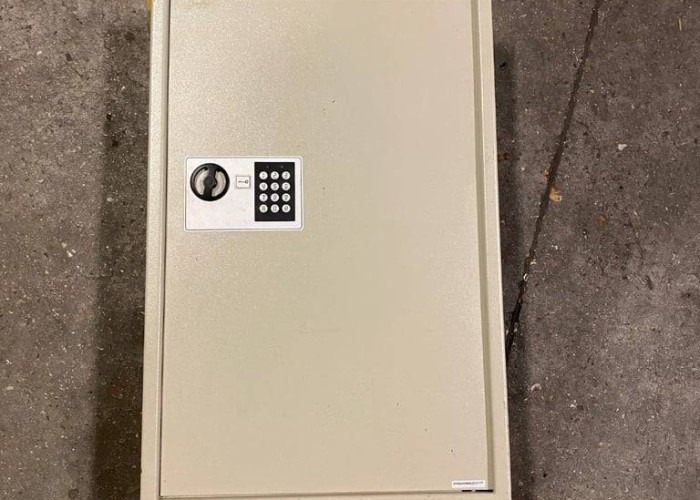 26x17” steel can be wall or floor mounted. Comes with combination. Collect london se15. NO OFFERS thanks for looking, , , Extension lead in the picture is for perspective only and is not included in the sale
