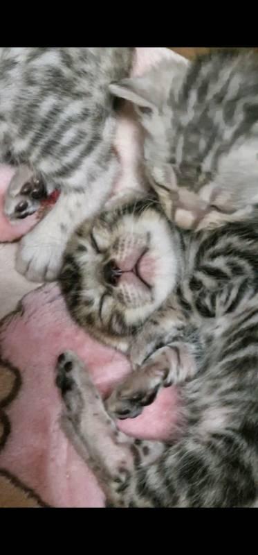 Dad is brown rosetted bengal., Mom is silver rosetted bengal., They have had 5 little cuties., Was born 14th may., Will put more pictures up next week., Located birmingham area. Can deliver for a fee. Absolutely gorgeous pure breed bengals. Really distinctive markings., Both parents are my pets and they gave grown up and used to to all household noises and around children. Deposits will be taken, when kitten is reserved.