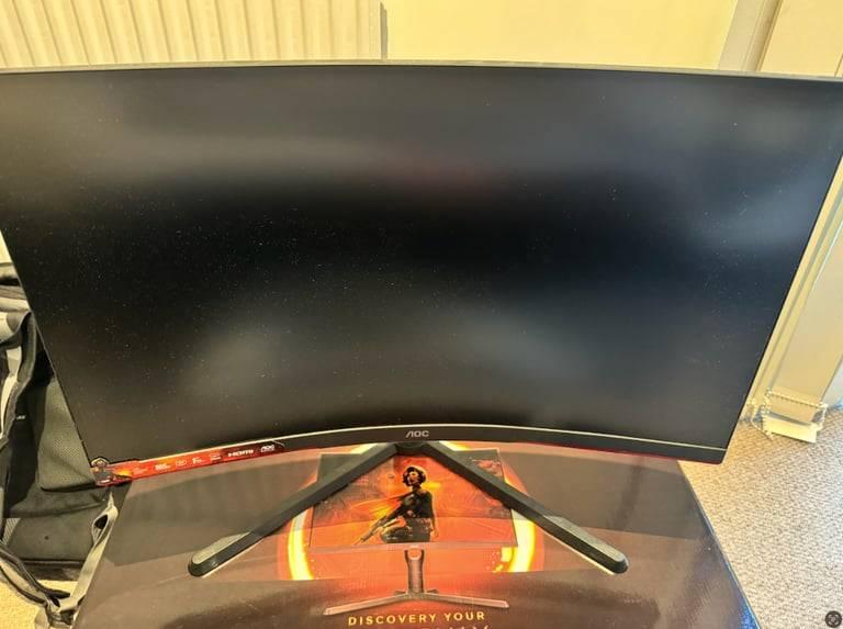 Purchased this monitor on January 20th, 2023 for £279.99. No cosmetic marks/scratches on the screen or any visible wear and tear., , AOC Gaming CQ27G3SU - 27 Inch QHD Curved Monitor, 165Hz, 1ms MPRT, FreeSync Premium, Height Adjust, Speakers (2560x1440 @ 165Hz, 300 cd/m² HDMI 2.0 / DP 1.2 / USB 3.2). Comes with original box., , No longer needed as I'm moving. Pickup only, between March 11th and March 14th.