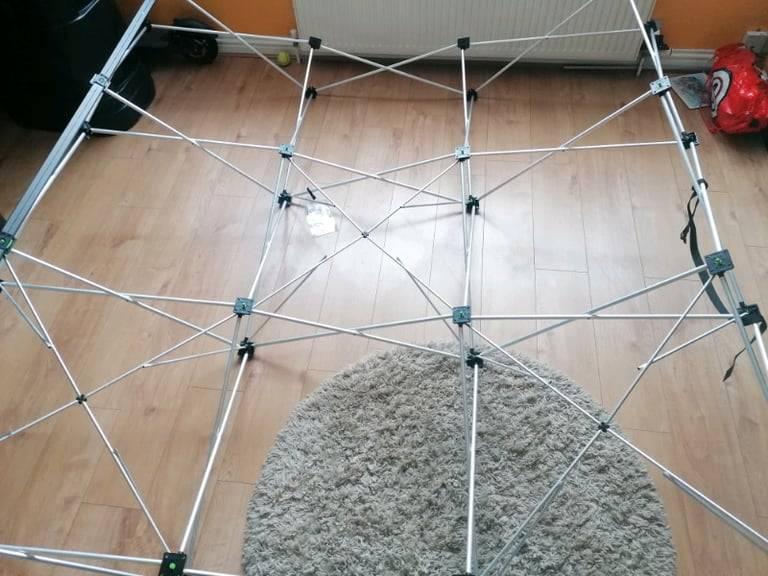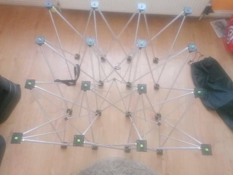 Folding curved aluminum, media, photo wall, dimension 2,3m x 2,3m, magnets and magnetic mats, large transport box. Very good condition. I would like some sensible offers.