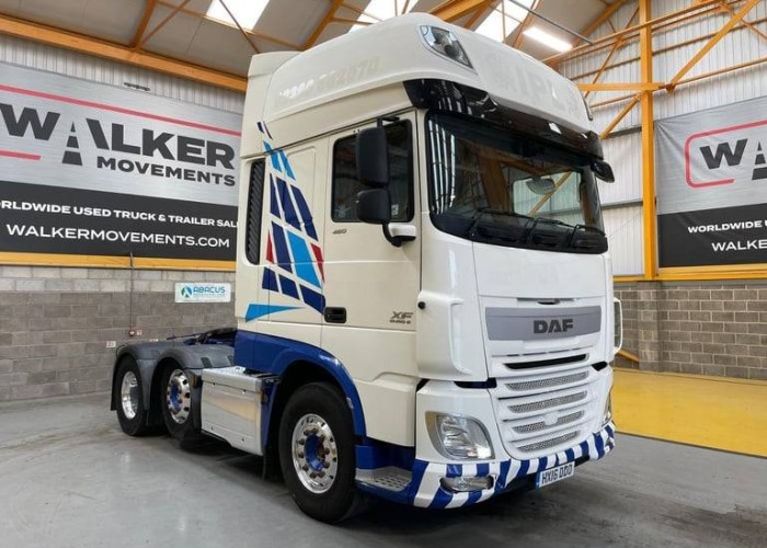 DAF XF Super Space High Roof Twin Sleeper Cab., Paccar 460 BHP Turbo Air to Air Charge Cooled Euro 6 Engine c/w Ad Blue., ZF 12 Speed AS Tronic Semi Automatic Gearbox., DAF Single Reduction Drive Axle c/w Diff Lock., Ecas Drive Axle Air Suspension c/w Hand Held Raise/Lower Controls., Air Suspended Midlifting/Steering Axle., Full Disc Braking System c/w ABS/EBS Control., Sliding Fifth Wheel c/w Run up Ramps., Aluminium Fuel tank., Alloy Wheels., Aluminium Chassis Catwalk., Rear Loading Lamp., Full Air Deflector Kit c/w Cab Side Extensions and Roof Spoiler., External Sunvisor., Roof Mounted Inset Spot Lamps., Front Bumper Inset Mounted Fog Lamps., 385/65R22.5 Wheels And Tyred Fitted To Front Axle., Air Suspended Drivers Seat c/w Adjustable Lumbar Support., Eberspacher Programmable Night Heater., Electric Driver and Passenger Windows., Electric Adjustable Heated Mirrors., Electric Sunroof., Air Conditioning (Not Tested)., Hill Start Assist., Switchable Traction Control., 12v and 24v Auxiliary Power Sockets., Radio/CD Player C/w Satellite Navigation., Multi Function Steering Wheel., Overhead & Underbunk Storage Lockers., Underbunk Fridge., Cruise Control., Front Axle Plated Weight: 8,000Kgs, Plated Weight: 44,000 Kgs, Design Weight: 44,000 Kgs, Mileage: 753,806 Kms, Tested Until End: June 2025, Registration: HX16DDO, Spec Number: 33441, UK sale + VAT, Export sale No VAT, About Us:, Walker Movements is a Midlands based, family owned business who supply quality used trucks in the UK and International markets. With nearly 2 decades experience, we pride ourselves on giving our customers choice from our large range of stock. We specialise in the sale of Scania, DAF, Volvo and ERF trucks trucks, but regularly hold a stock of Mercedes, MAN, Iveco, Foden and Renault trucks trucks. We also have the facilities to transport and ship any of the vehicles that we have in stock to any destination in the world., Opening Hours:, Mo: 08:00 AM to 06:00 PM, Tu: 08:00 AM to 06:00 PM, We: 08:00 AM to 06:00 PM, Th: 08:00 AM to 06:00 PM, Fr: 08:00 AM to 06:00 PM, Sa: 08:00 AM to 01:00 PM, Su: Closed