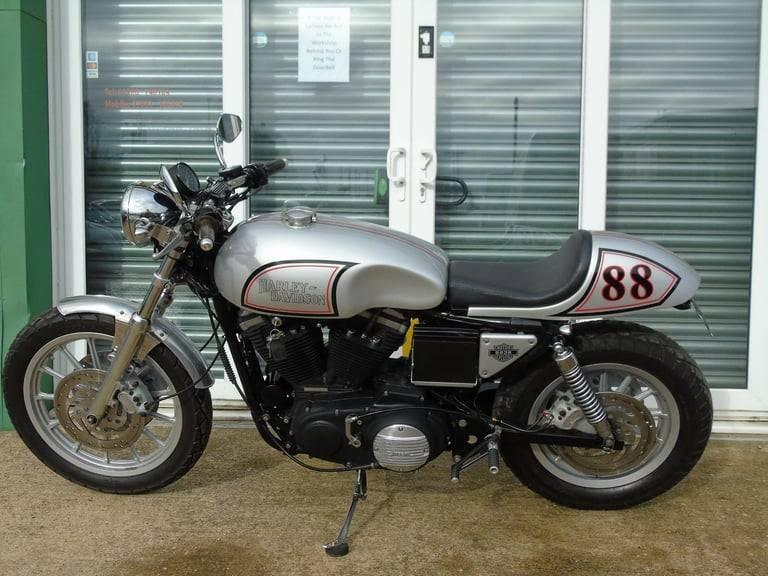 Harley-Davidson Norton Style Sportster Cafe Racer, She has had a small fortune spent on her transforming her from a 883R into this lovely Cafe racer, Fitted 2 into 1 Supertrap exhaust, High flow air cleaner, Norton style tank & matching rear seat unit, Twin front brakes, 2 Keys, Fully Hpi & DVLA history checked. We can offer a Full UK Delivery Service along with great part exchange deals, All major cards accepted, Finance available. Only £10995, Please note showroom opening hours do vary, Tel: Showroom 01780 740184 / 01780 437594, Mobile [Phone number removed]. Keep updated by following us on Instagram, YouTube & TikTok., [Website URL removed], Opening Hours:, Mo: 09:00 AM to 05:00 PM, Tu: 09:00 AM to 05:00 PM, We: Closed, Th: 09:00 AM to 05:00 PM, Fr: 09:00 AM to 05:00 PM, Sa: 09:00 AM to 01:30 PM, Su: Closed