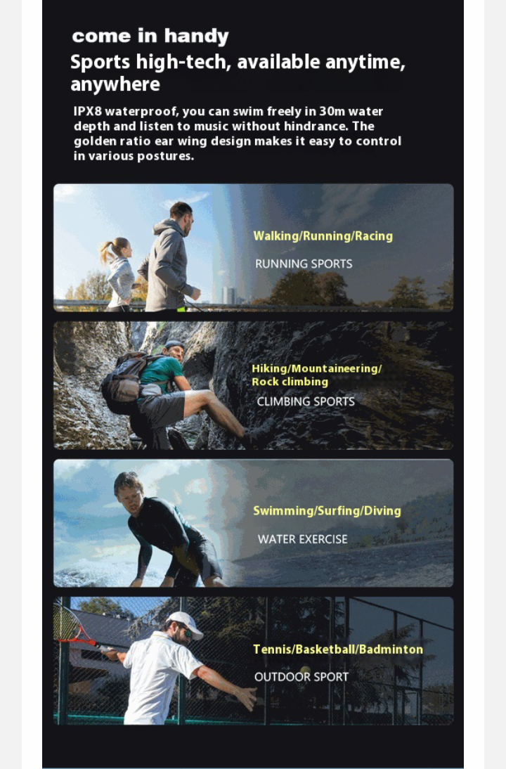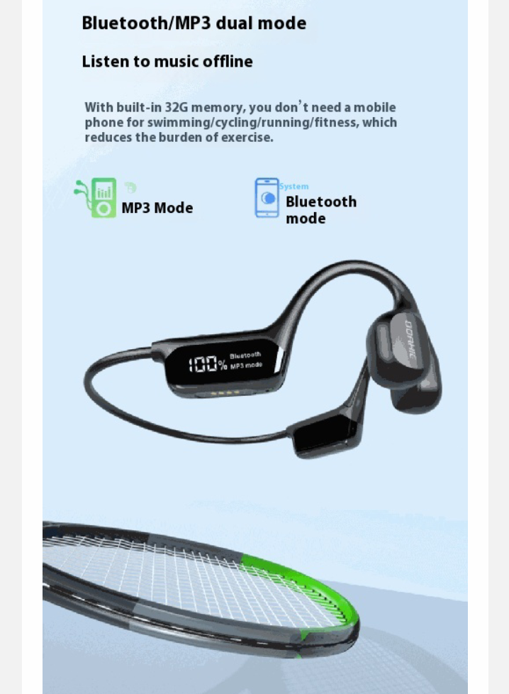 Display screen Bluetooth headset for bone conduction 53 Waterproof sports headset.