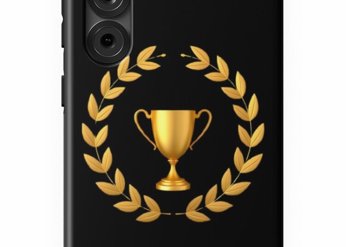 A striking gold color trophy enclosed within a gold color laurel wreath, elegantly set against a bold black background. Designed exclusively for mobile cases, this design symbolizes achievement, success, and prestige with a timeless aesthetic..Click to explre more