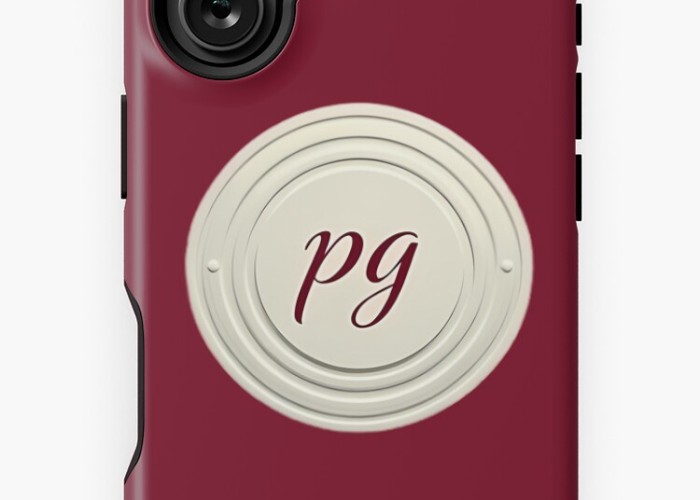 A sleek white circular emblem with the centered text "PG" set against a rich maroon backdrop. Representing the ParisGallery designer brand, this exclusive artwork is crafted specifically for mobile cases, offering a modern and elegant aesthetic.Click to explore more