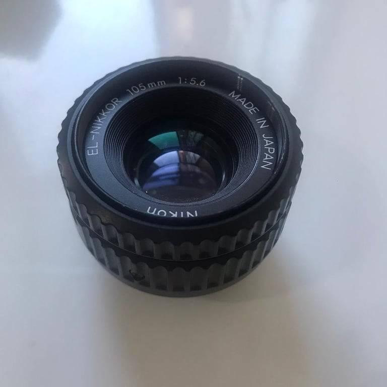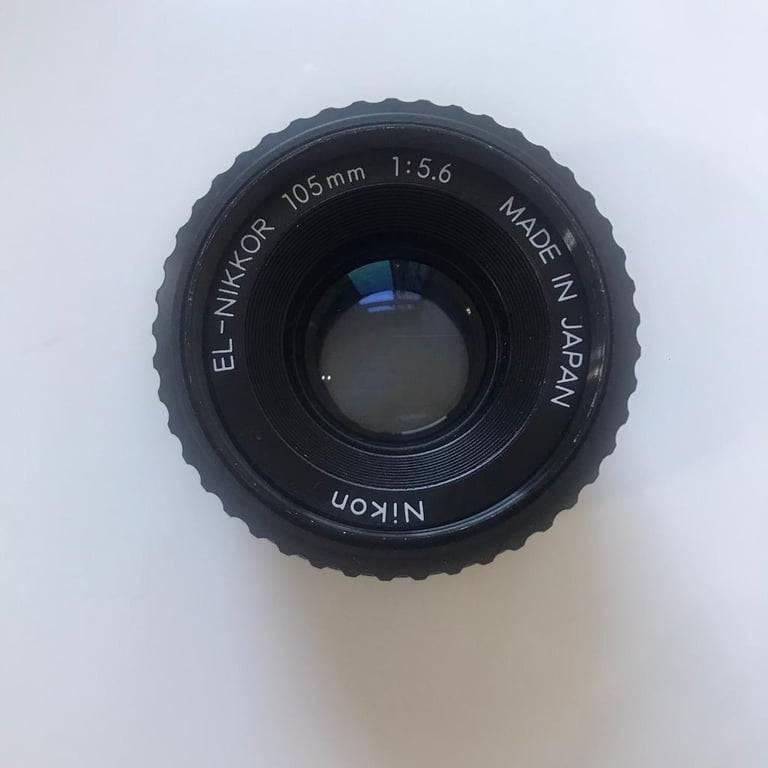 Nikon EL-Nikkor 105mm f5.6 Enlarger lens - Good, Lens is in Good condition, Very bright and clear optics., There are some cleaning marks on the front and rear glass., Movement’s fully working, Body in good condition, minor paint loss to rear lens rim., Collection Newcastle under Lyme ST5, Postage - £8 Royal Mail Special Delivery