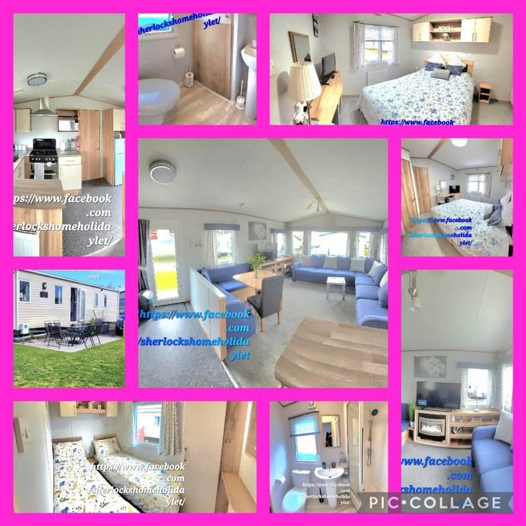 2 bedrooms , sleeps 6 with the pull out double in the lounge., 2 WCs, 2 Smart T.V.s, 5G WiFi, Beds made up for your arrival, Lots of extras included as standard, Large south facing patio and grass area with table and chairs, Parking space, Travel cot, Highchair, Bedguard, Baby bouncy chair, Shower stool available on request, Families and Couples Welcome, No Smoking or Pets, Please note , price listed is a starting point for certain off peak dates .