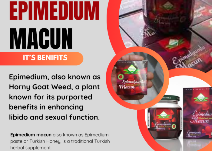 Epimedium macun, also known as Epimedium paste or Turkish Honey, is a traditional Turkish herbal supplement. It's popularly used as an aphrodisiac and general health tonic. The main ingredient in this paste is typically Epimedium, also known as Horny Goat Weed, a plant known for its purported benefits in enhancing libido and sexual function.